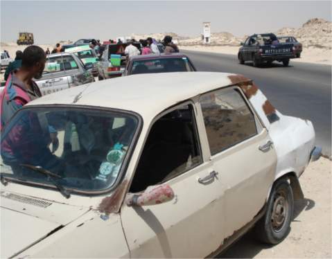 Buschtaxis bezeichnet. Dort steht auch ein Mercedes 190 der nach Atar